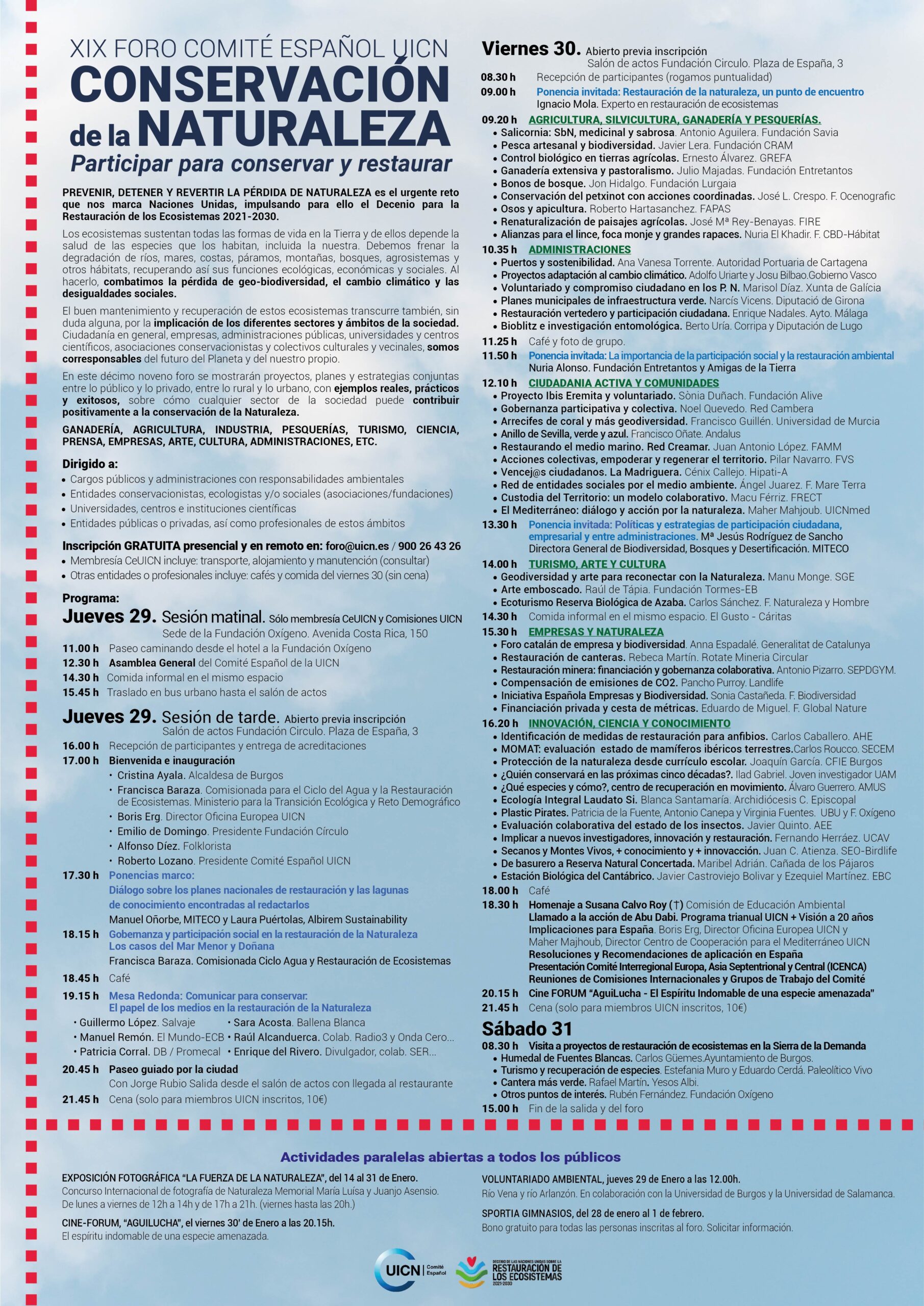 - foro@uicn.es o en el 900 26 43 26. Formulario de inscripción.